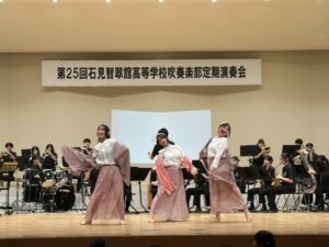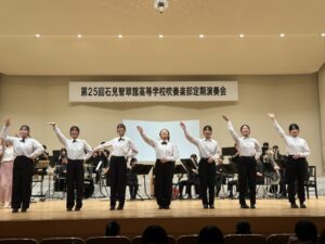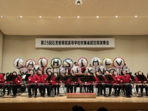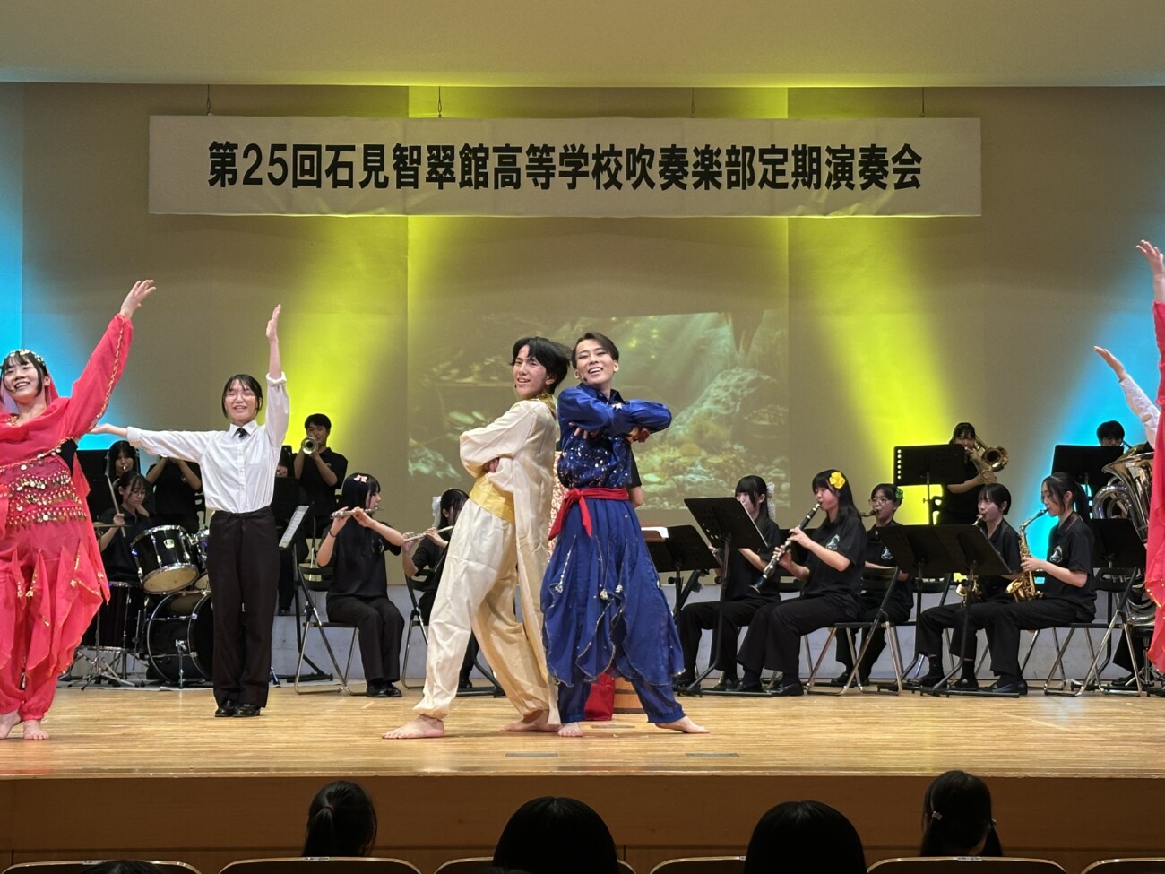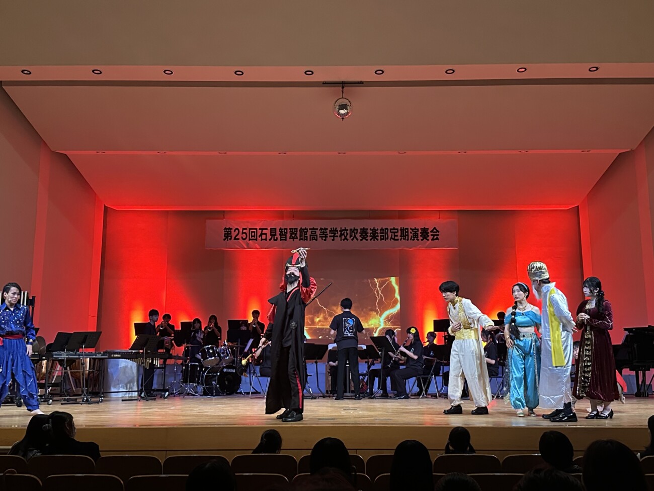 今年度は25周年記念公演ということで、マーチングステージにも挑戦し、たくさんの方々から多くの反響をいただきました。今年のミュージカル「アラジン」も前年度の「美女と野獣」に引き続きご好評の声をいただいております。これで3年生は引退となりますが、1,2年生主体となり新体制となって日々の練習を頑張っていきます。また来年もみなさんに楽しんでいただけるような演奏会を計画しておりますので是非ご来場ください。