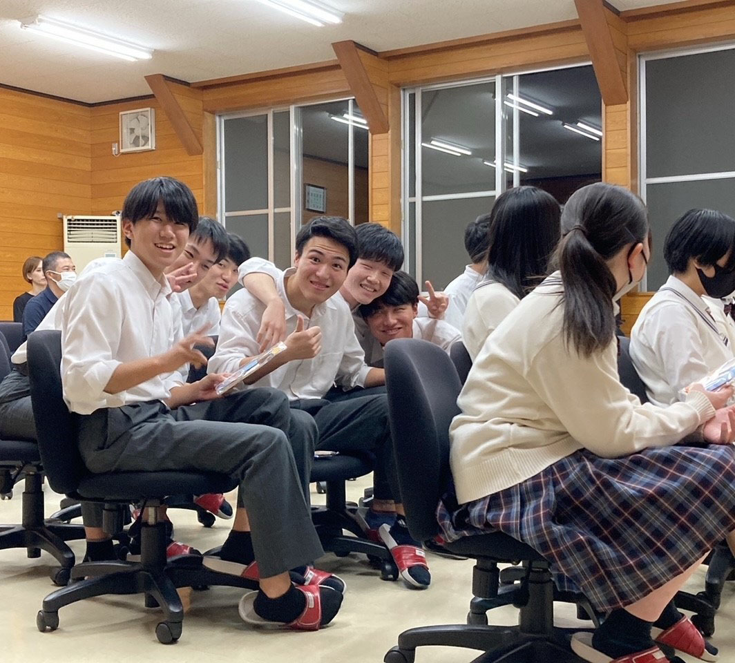 その後、保護者様からも激励の言葉をいただき、記念品として大田市の物部神社の絵馬とお守り、さらに「智翠館」の名が刻まれた鉛筆、応援メッセージ付き色紙が手渡されました。