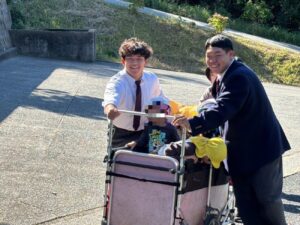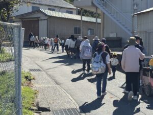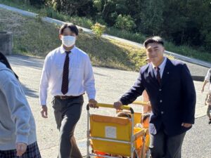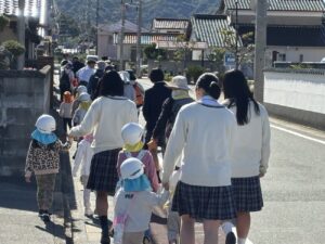 10月29日、近隣にあります渡津保育所さんと合同で、地震及び津波を想定した避難訓練を行いました。地域の防災力向上を目的とし、生徒たちが主体的に園児の避難誘導を担当しました。