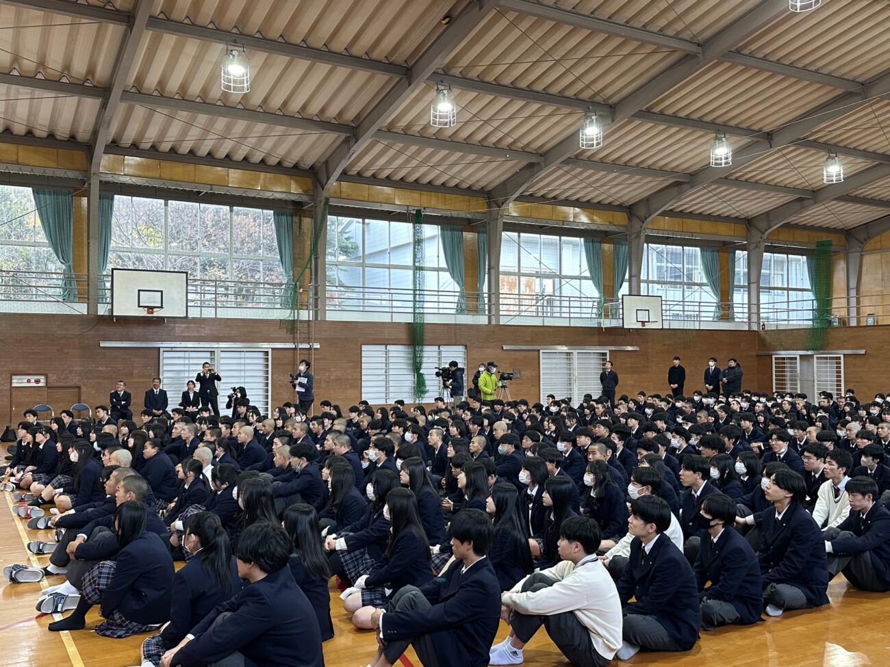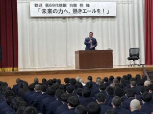 生徒たちに向けて「自ら行動し頑張り努力することで神様はその人に運を与えてくれます。そして未来に夢をもって頑張ってほしいと思います。」と激励の言葉をいただきました。