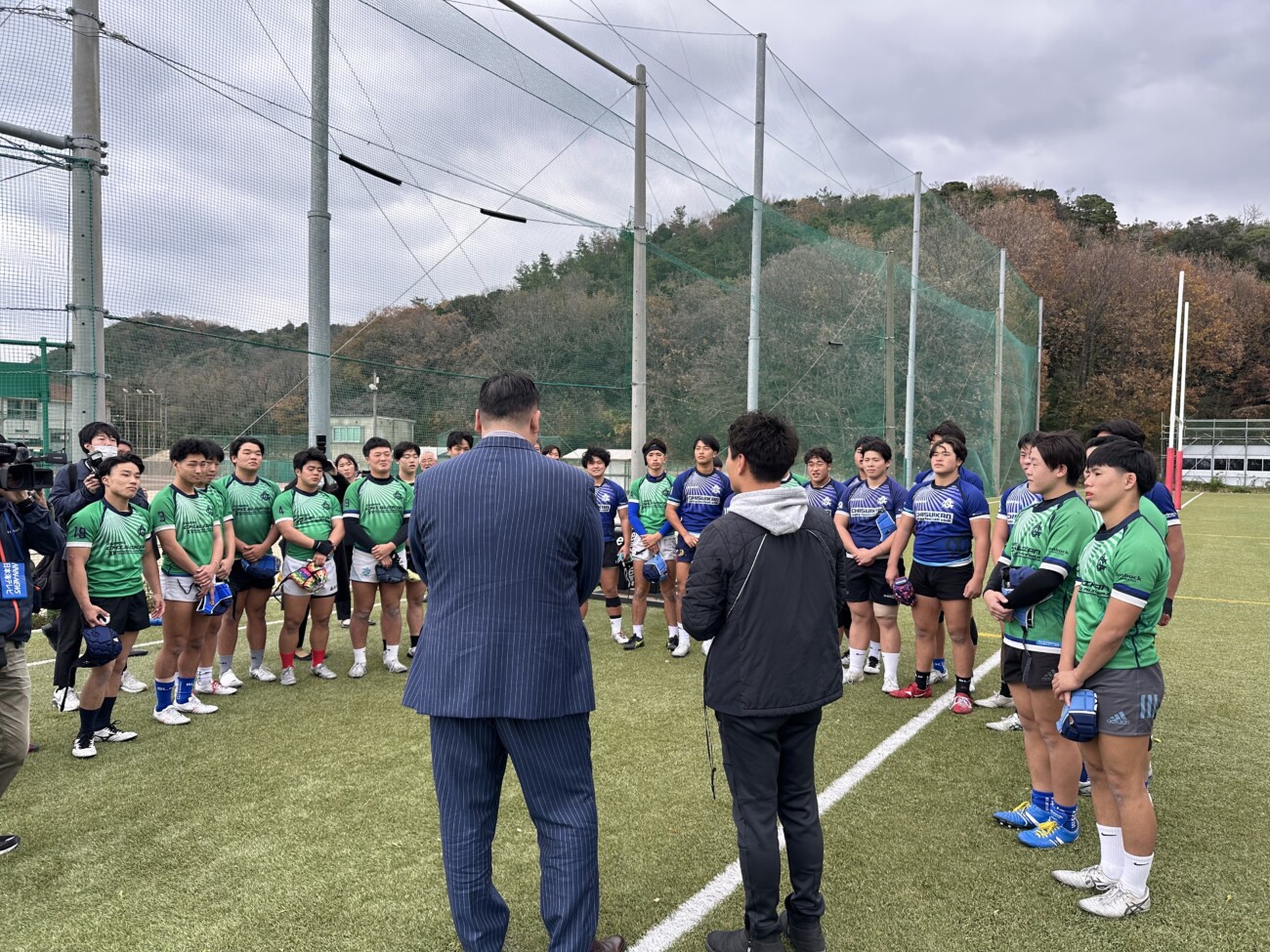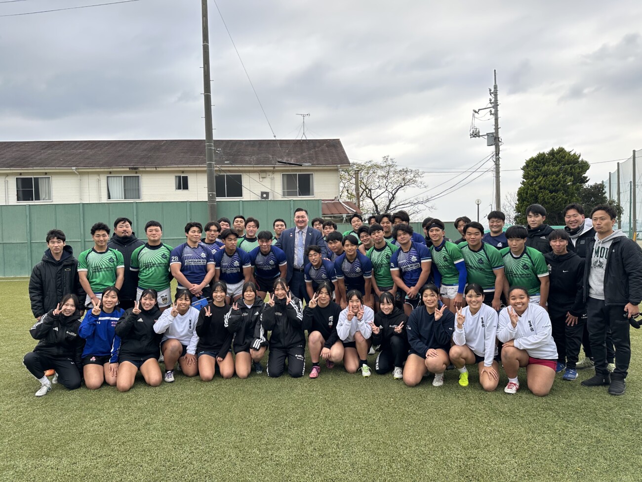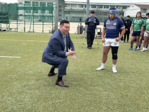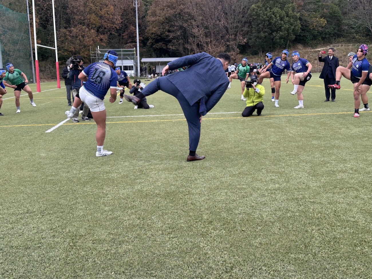講演のあとはラグビー場も見学され、本校ラグビー部に四股も伝授していただきました。終始笑顔の絶えない穏やかな白鵬さんに生徒、職員ともに心が温かくなりました。