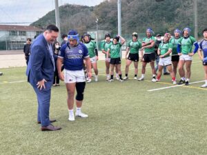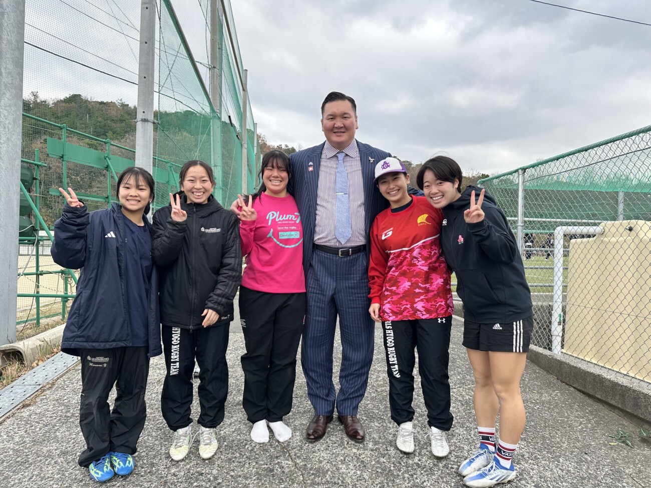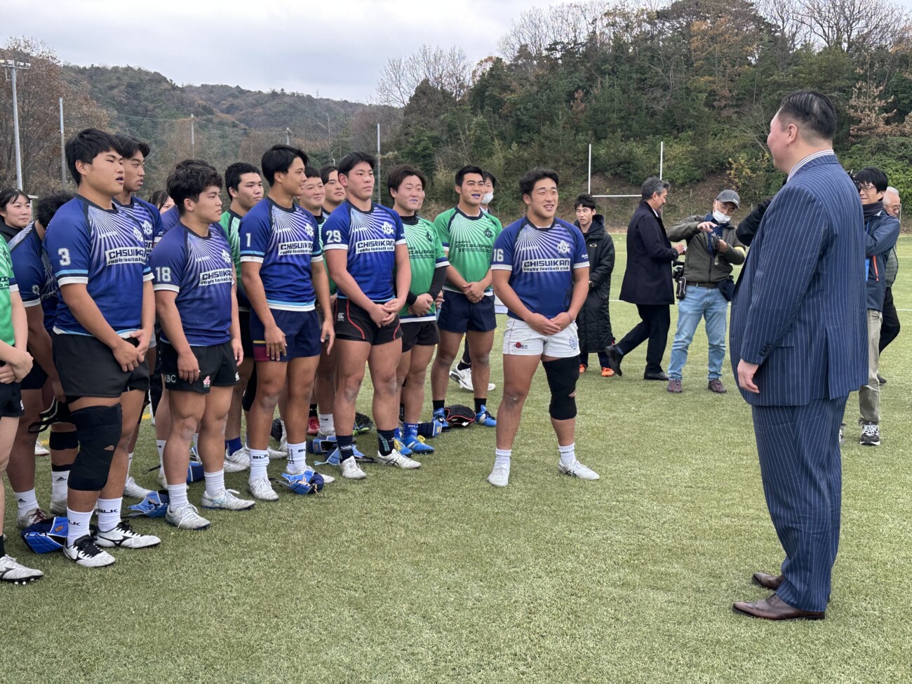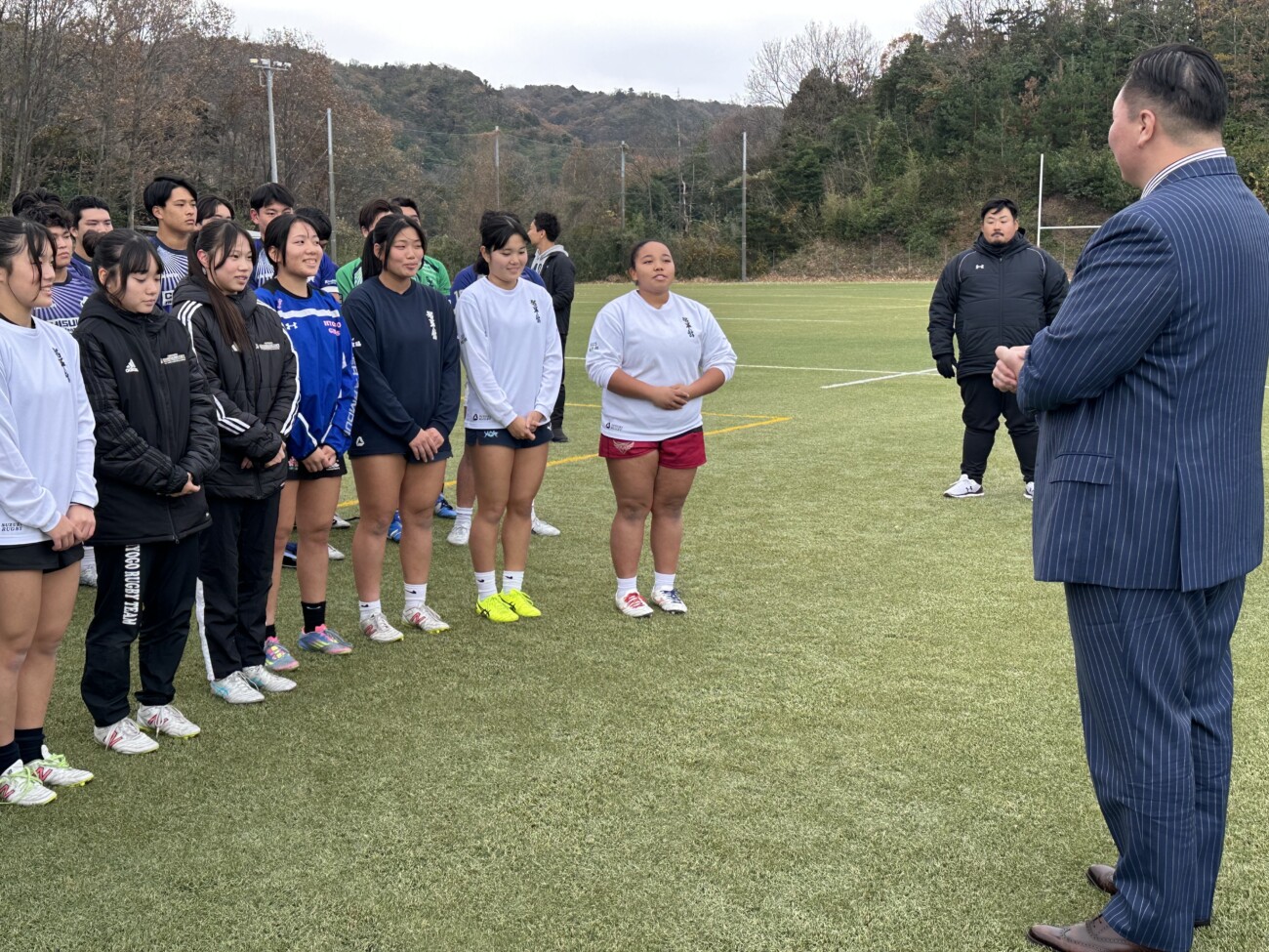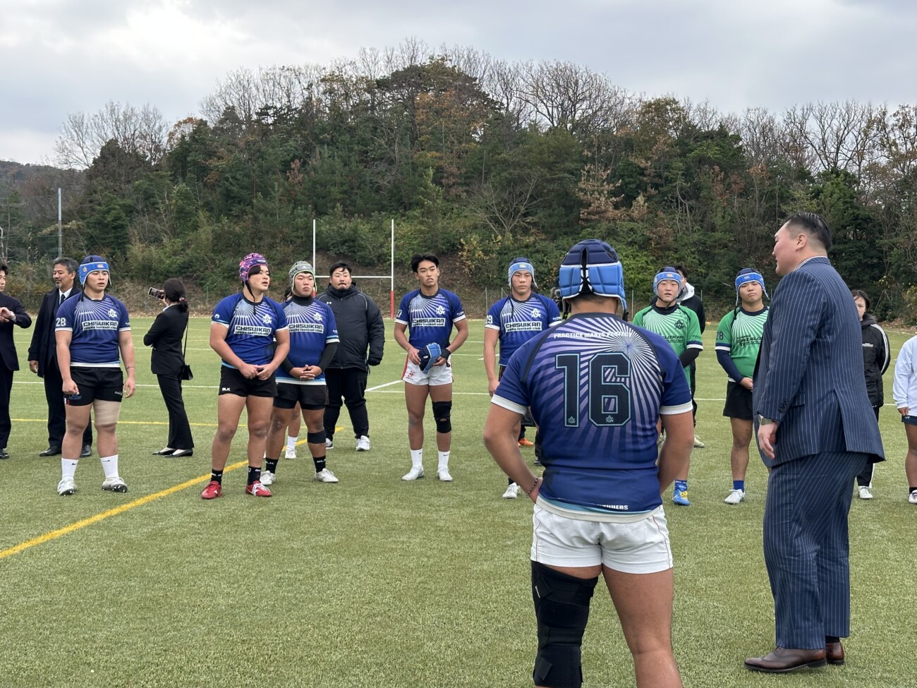 講演のあとはラグビー場も見学され、本校ラグビー部に四股も伝授していただきました。終始笑顔の絶えない穏やかな白鵬さんに生徒、職員ともに心が温かくなりました。