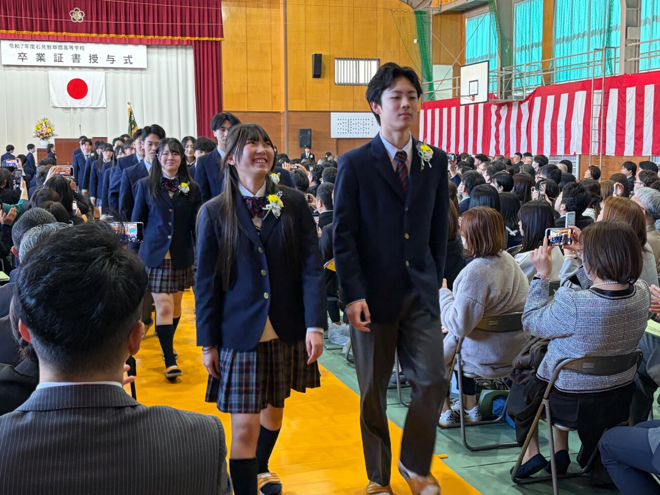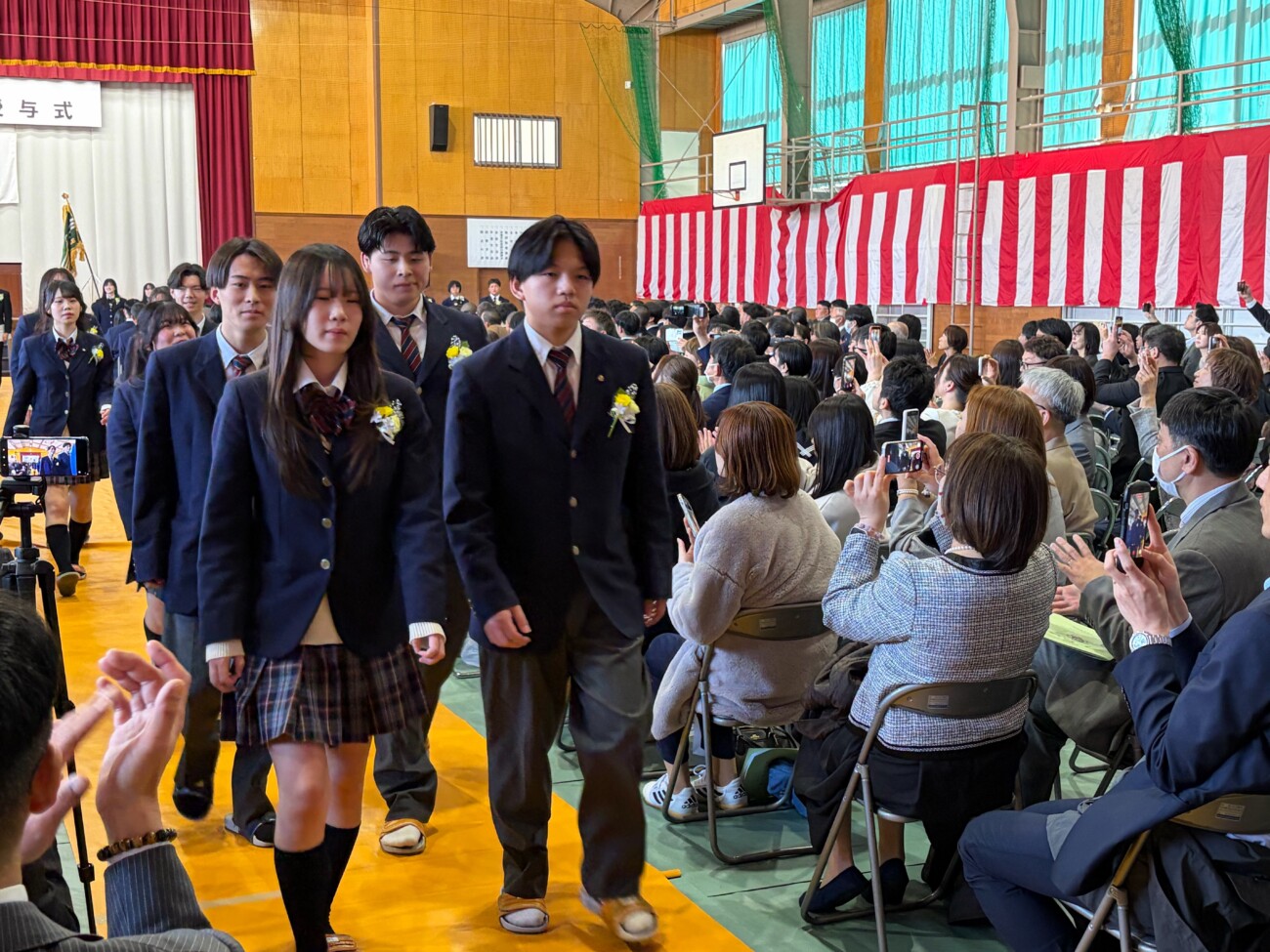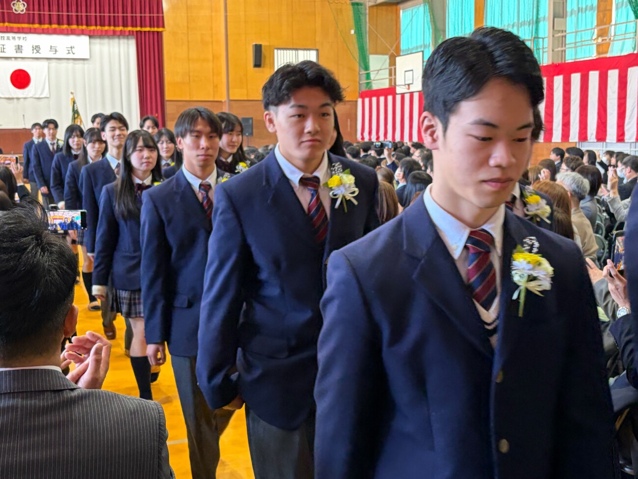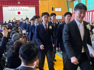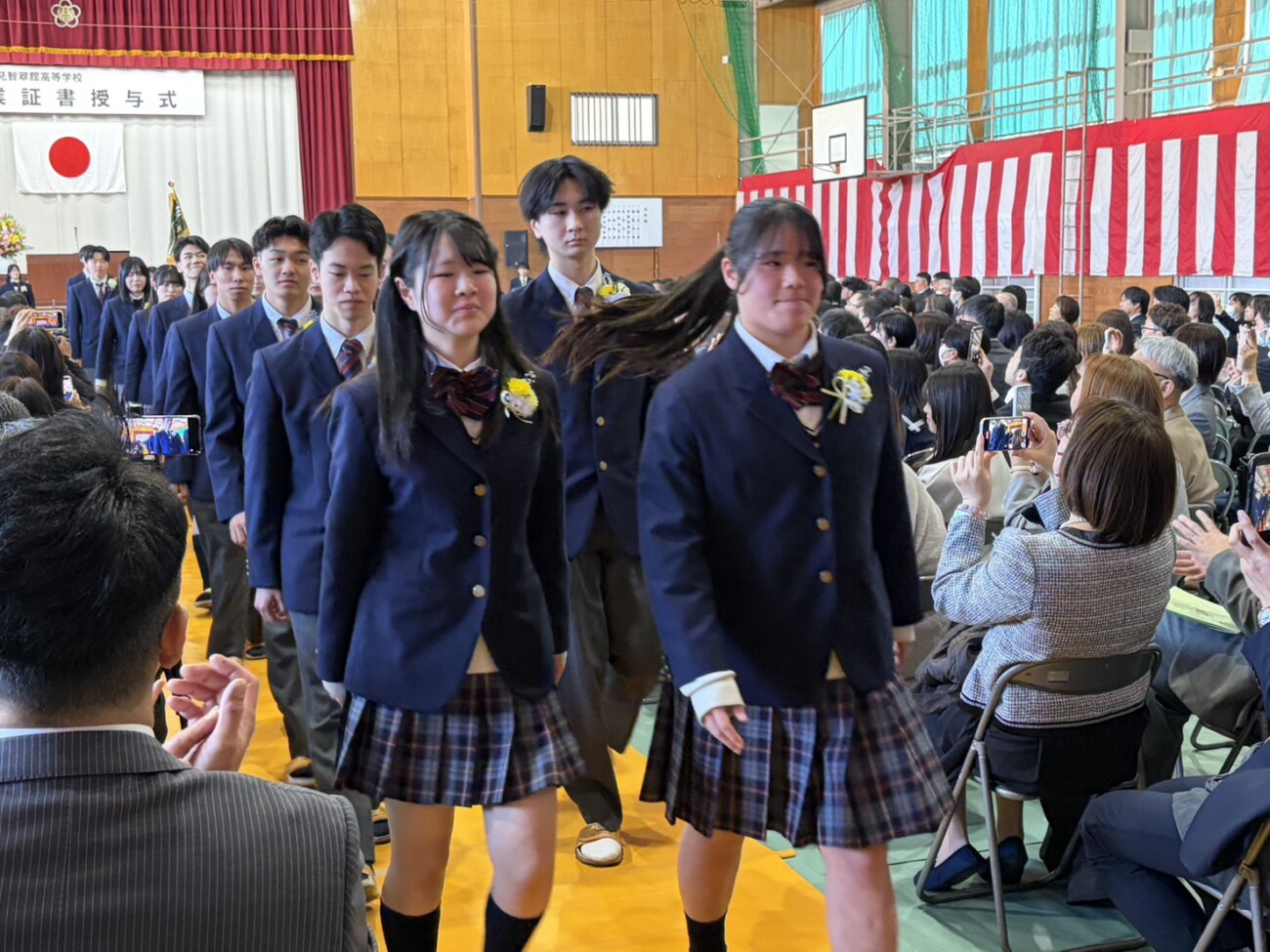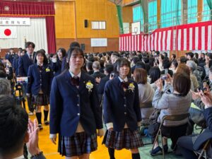 岡﨑校長は式辞において「皆さんがこれまで経験してきた喜びや成功、そして悔しさや失敗。そのすべてが、皆さんを強くし、優しくし、成長させてきました。これから先、困難に出会うことがあっても、どうか思い出してください。その出来事にも必ず意味があり、未来の自分へとつながっているということを。