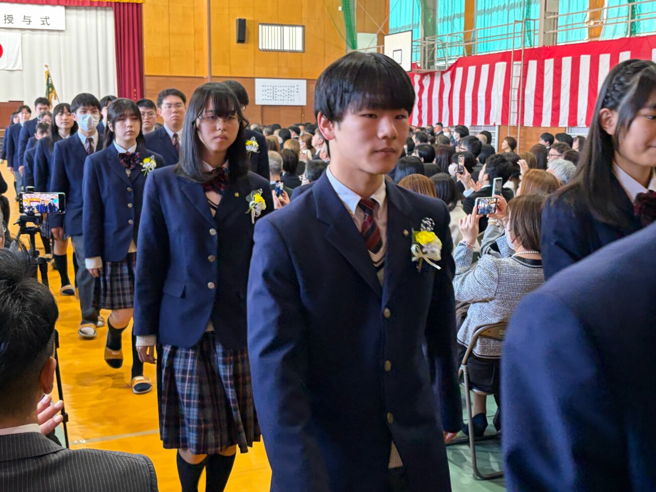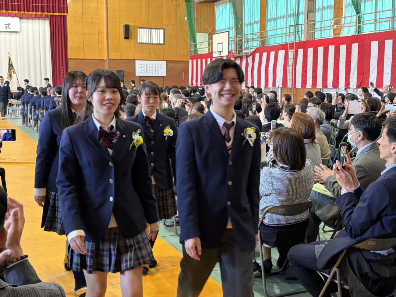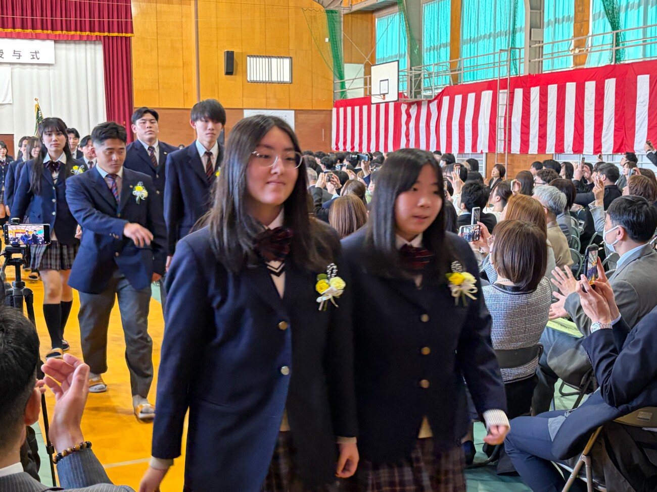 岡﨑校長は式辞において「皆さんがこれまで経験してきた喜びや成功、そして悔しさや失敗。そのすべてが、皆さんを強くし、優しくし、成長させてきました。これから先、困難に出会うことがあっても、どうか思い出してください。その出来事にも必ず意味があり、未来の自分へとつながっているということを。
