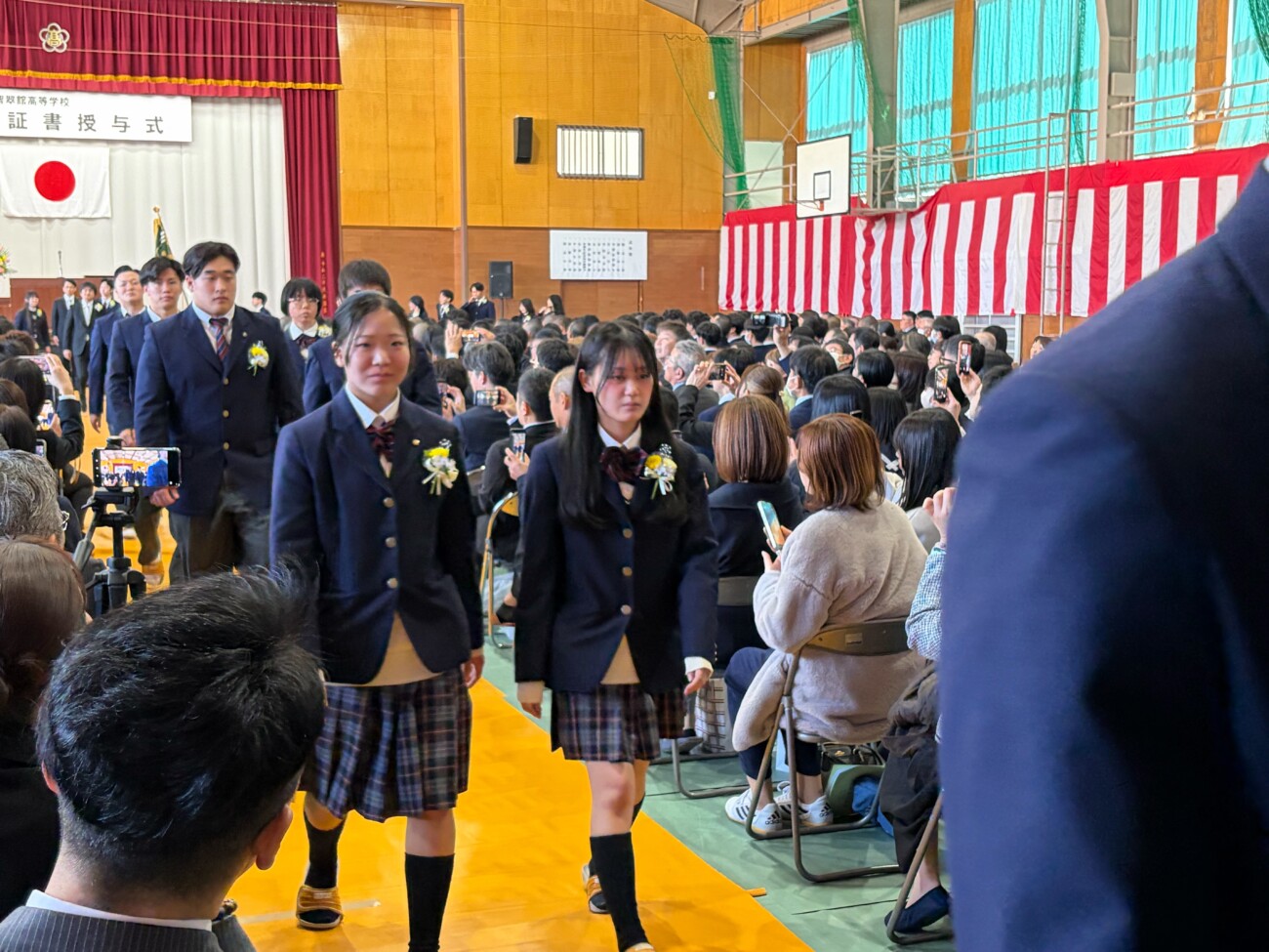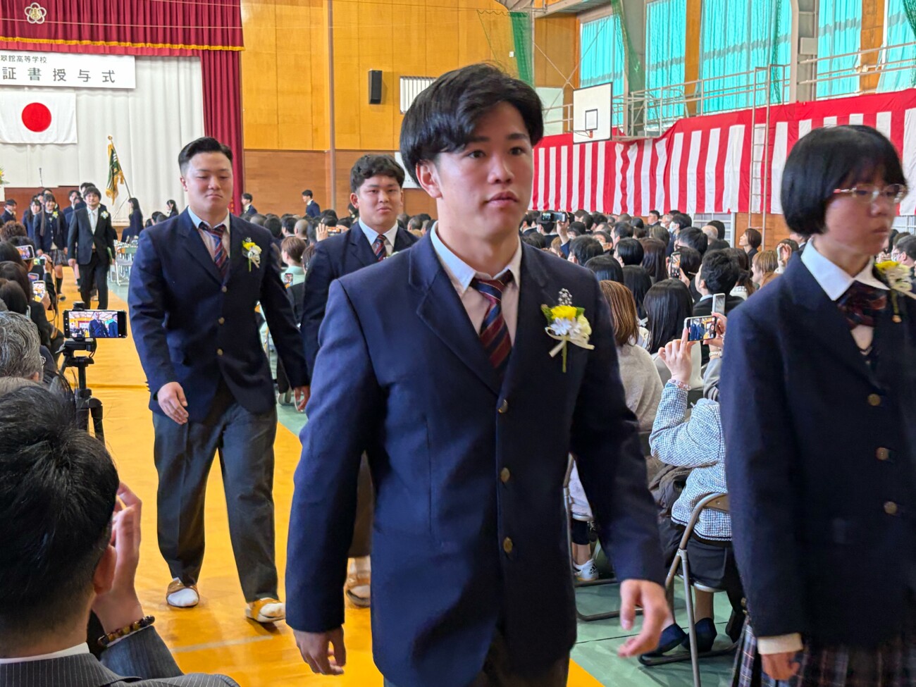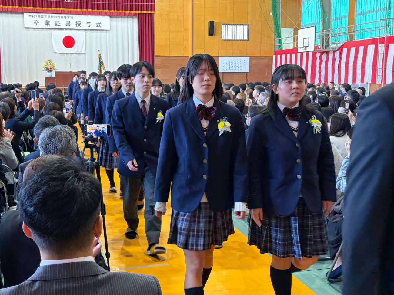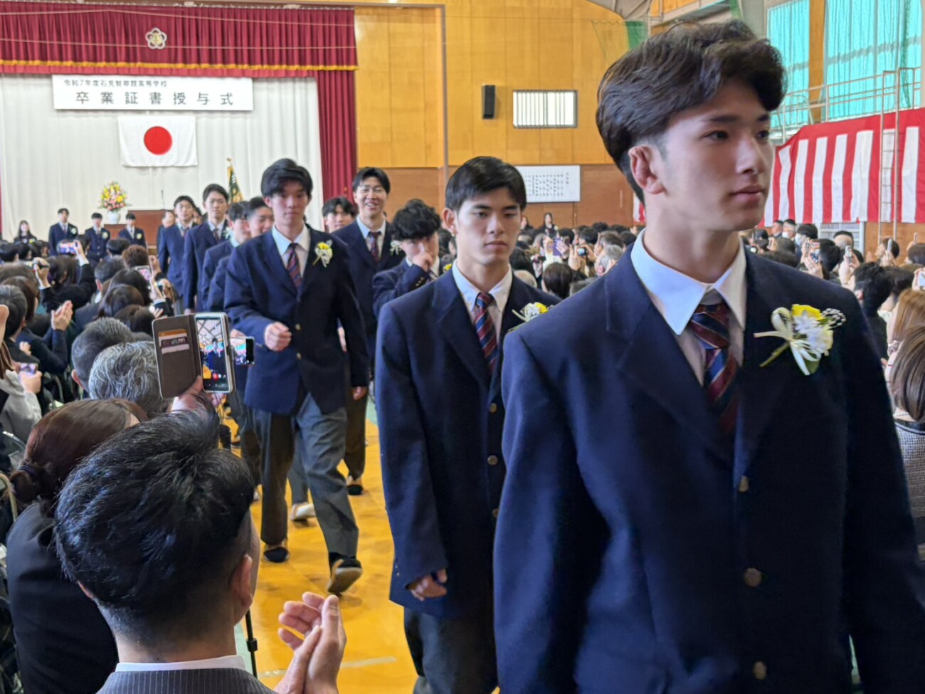 岡﨑校長は式辞において「皆さんがこれまで経験してきた喜びや成功、そして悔しさや失敗。そのすべてが、皆さんを強くし、優しくし、成長させてきました。これから先、困難に出会うことがあっても、どうか思い出してください。その出来事にも必ず意味があり、未来の自分へとつながっているということを。